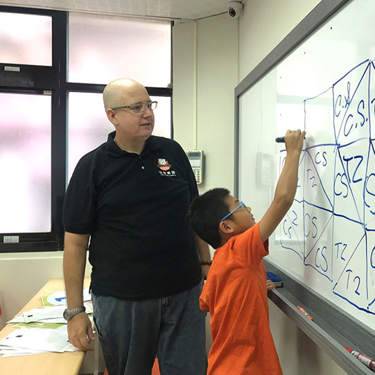 採用多頻率的探究式教學法(inquiry-based approach),以全外師全美語的上課模式結合美國小學教科書及ELT兒美教材,在校上課期間中外師皆以美語與孩子對談,讓孩子自然而然的熟悉陌生語言,進而內化成第二母語,讓說美語如同呼吸一樣自然。除【聽】【說】能力之外,從小一即開始培養【閱讀】【寫作】能力,完成Grade 6,即具備國中會考英語精熟度或全民英檢中高級程度。